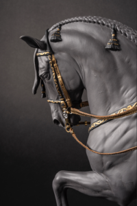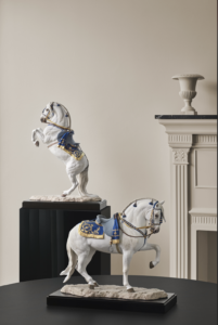 Para esta ocasión, la firma presenta una selección especial de creaciones que rinden homenaje al caballo desde distintas expresiones formales. Destacan las esculturas de caballos en alta porcelana, verdaderas obras de arte realizadas en edición limitada, donde cada gesto, musculatura y acabado refleja el virtuosismo técnico de los talleres Lladró. Piezas como los caballos españoles pura sangre evocan nobleza y carácter atemporal.