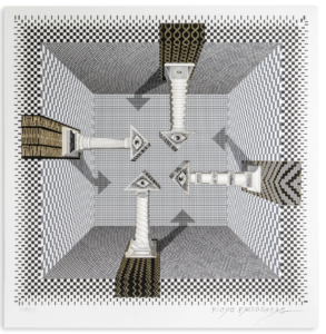 Su obra se expandió en grabados minuciosos, arquitecturas imposibles y patrones que se repiten hasta el vértigo. Columnas que se transforman en criaturas, laberintos decorativos y composiciones que parecen diseñadas por una mente obsesionada con el detalle. En ese juego entre lo barroco, lo fantástico y lo irónico encontró un lenguaje propio que nunca dejó de sorprender.