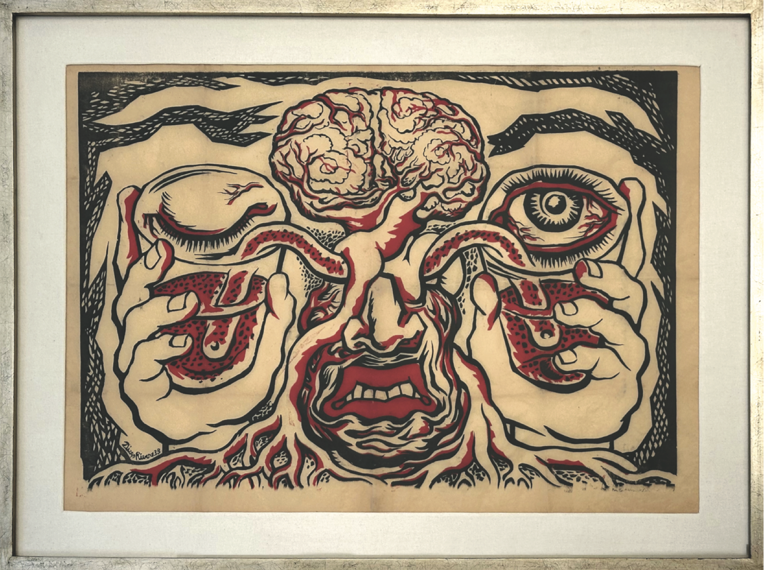 El punto de partida es el célebre grabado de Diego Rivera inspirado en el Manifiesto por un arte revolucionario independiente, firmado junto a André Breton y León Trotsky. En él, Rivera tradujo los flujos entre arte, política y sueño en una máquina visual de cuerpos e ideas que siguen resonando hoy.