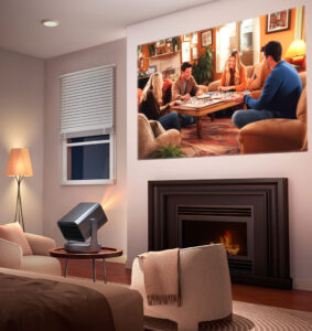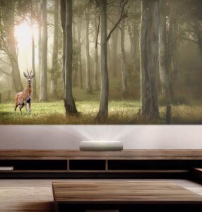 Si tienes poco espacio entre muro y mobiliario, el proyector SP-LPU9D de tiro ultra corto de Samsung permite proyectar en gran formato sin complicaciones.
