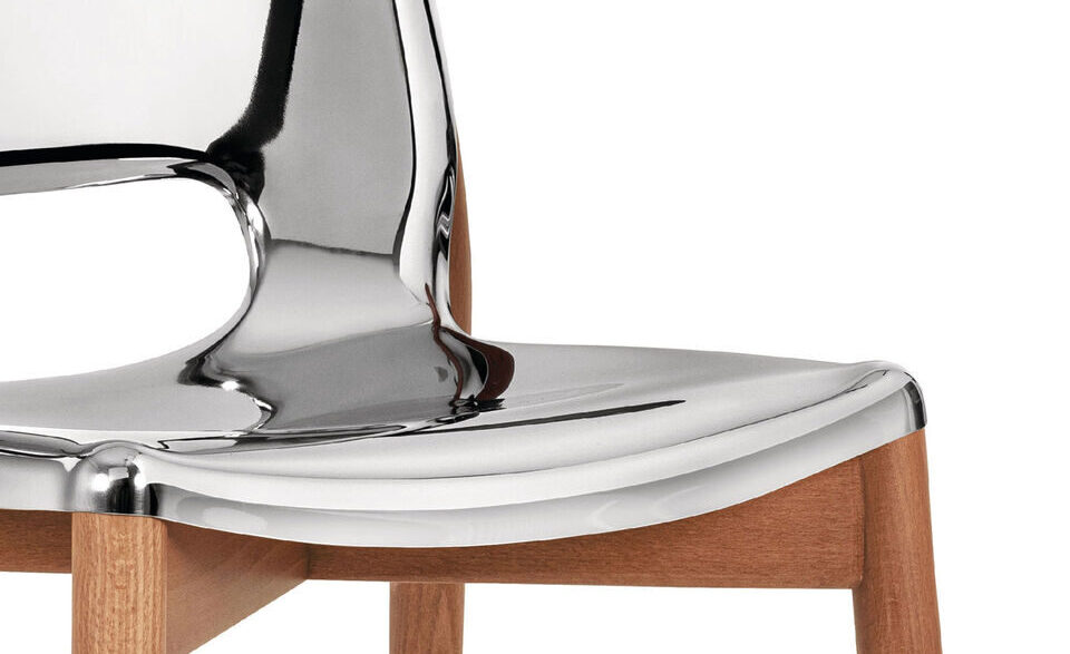 En ambientes pequeños o con poca iluminación, un espejo estratégicamente colocado puede abrir visualmente la habitación y reflejar la luz natural. Modelos como el Kooh-I-Noor de Glas Italia, que se apoya directamente sobre el piso, permiten este efecto sin intervenir en muros. Es un objeto arquitectónico más que decorativo.