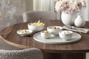 Afina es una colección que entiende el minimalismo no como una tendencia, sino como una forma consciente de habitar la mesa. Diseñada por Christian Haas para Villeroy & Boch, propone una estética serena y contemporánea donde cada gesto está medido: porcelana premium de un blanco luminoso, formas coupe depuradas y un delicado relieve que se percibe más al tacto que a la vista. El resultado es una vajilla que transmite calma, precisión y una sofisticación silenciosa.