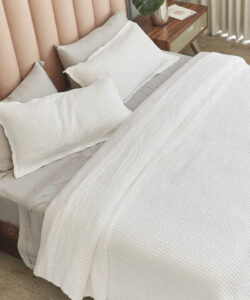 Las sábanas se vuelven más ligeras, las fundas capturan la luminosidad del día y las toallas envuelven con suavidad. Cada elemento responde a una búsqueda actual de bienestar, donde el lujo se encuentra en lo esencial y en la experiencia cotidiana.