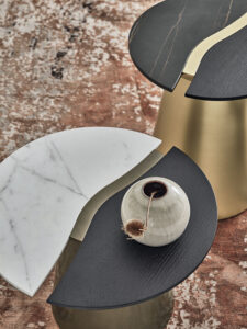 Más allá de su función, Yang aporta carácter y sofisticación, ya sea como mesa de centro, lateral o de acento junto a un sofá o sillón. Es un diseño que refleja la filosofía de Bontempi: crear piezas que hablen de innovación, elegancia y una sensibilidad estética atemporal.